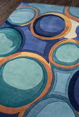 Teal Blue Multicolor Hand Tufted Wool Silk Rug
