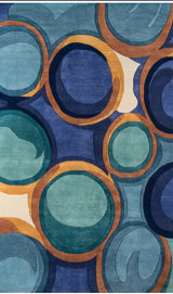 "Indulge in the Beauty of Multicolor Teal Blue: Hand-Tufted Wool Silk Rug for a Grand Living Room Makeover"